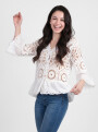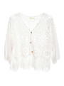 Dieses zauberhafte Jäckchen aus feiner Häkelspitze verleiht jedem Outfit eine feminine, verspielte Note. Die weich schwingenden Volants mit zarter Lochstickerei umspielen locker deine Hüfte und sorgen für eine elegante Silhouette. Ob zur leichten Sommerhose oder über einem Kleid – dieses It-Piece begleitet dich stilvoll durch den Tag und lässt sich je nach Anlass edel oder lässig kombinieren.