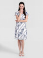 - Bequeme A-Linie, Cap-Ärmel, Rundhals und schwingender Volant am Saum.