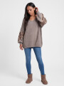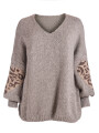 - Legerer oversized Pullover mit V-Ausschnitt und Herzmotiv aus Leo-Muster Ärmel