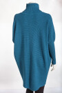 Oversized langer Rollkragenpullover Damen Fledermausärmel hinten länger Petrol 38-46 (Herstellergröße One Size)